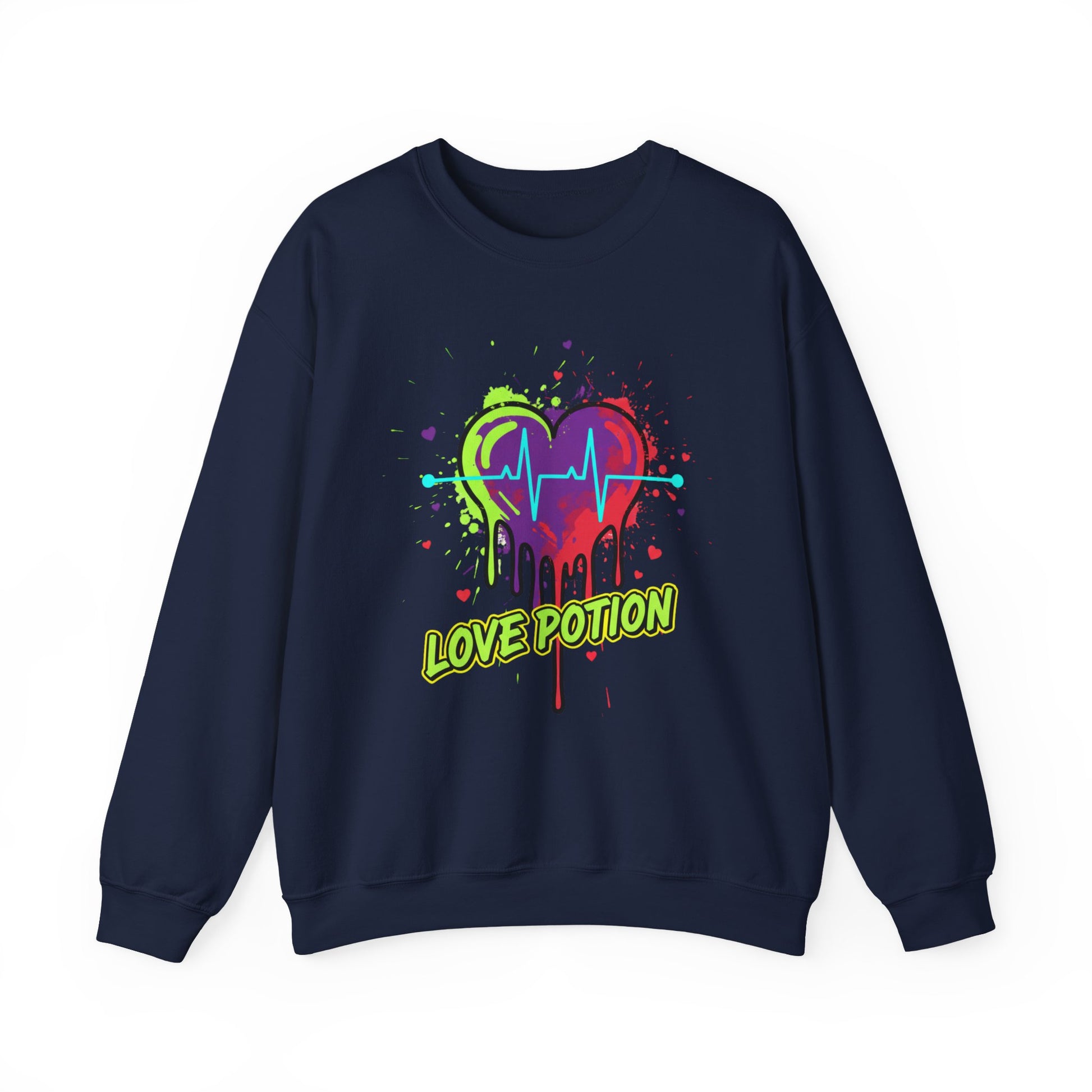 Neon Drip Heart Love Potion sweater | Vibrant EKG Graphic